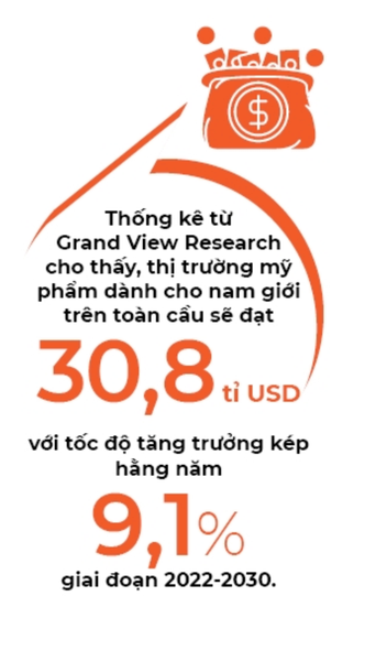 Thống kế từ Grand View Research cho thấy, thị trường mỹ phẩm dành cho nam giới trên toàn cầu không ngừng tăng trưởng hằng năm. Ước tính con số này sẽ đạt 30,8 tỉ USD với tốc độ tăng trưởng kép hằng năm 9,1% trong giai đoạn 2022-2030. Tại châu Á, Nhật, Hàn Quốc và Thái Lan từ lâu là những thị trường mỹ phẩm nam lớn nhất. Nghiên cứu gần đây cho thấy khoảng 1/3 nam giới trong độ tuổi 25-34 ở Thái Lan mua phấn nền hoặc son môi; tại Hàn, theo khảo sát của GlobalData, khoảng 3/4 nam giới Hàn Quốc sử dụng các sản phẩm chăm sóc tóc và da hằng tuần. Con số này đặc biệt cao hơn ở Gen Z và Gen X. 58% người trẻ sinh sau năm 2000 thực hiện các liệu pháp chăm sóc sắc đẹp ít nhất 1 lần/tuần, chiếm 34% đàn ông xứ Hàn. Research and Markets nhận định, Ấn Độ, Thái Lan, Trung Quốc và Indonesia là 4 thị trường sẽ chứng kiến tốc độ tăng trưởng vượt bậc của lĩnh vực này.